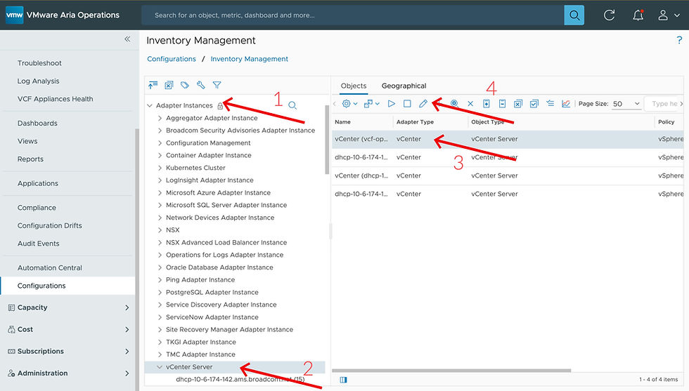 Next click on Adapter Instances > the adapter type you'd like to modify > the adapter itself > Edit (Pencil Icon):